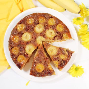 Storing: To keep your upside down banana cake fresh and delicious, store it in an airtight container. You can leave it at room temperature for a day or two but, for longer storage, place it in the refrigerator, where it will stay fresh for up to 5 days.