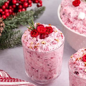 Cranberry marshmallow fluff is a versatile holiday dish that works beautifully on both the dinner table and the dessert spread.