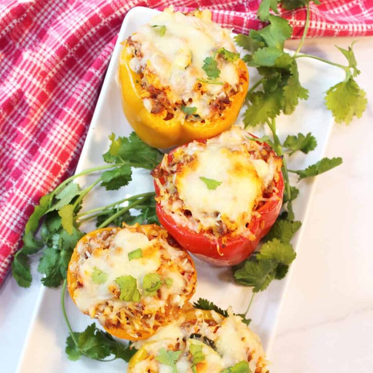 These Italian Stuffed Peppers with Ground Beef are easy to make and can be on the table in 45 minutes. It's like a low-carb lasagna prepared in an edible dish. Deliciously satisfying and perfect for busy weeknights and lazy weekends.