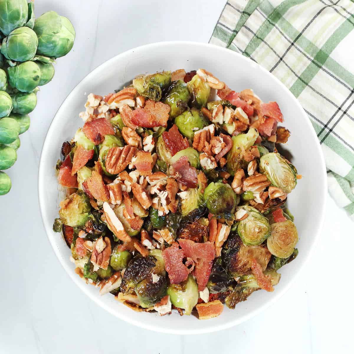 Maple Balsamic Brussels Sprouts with Bacon and Pecans